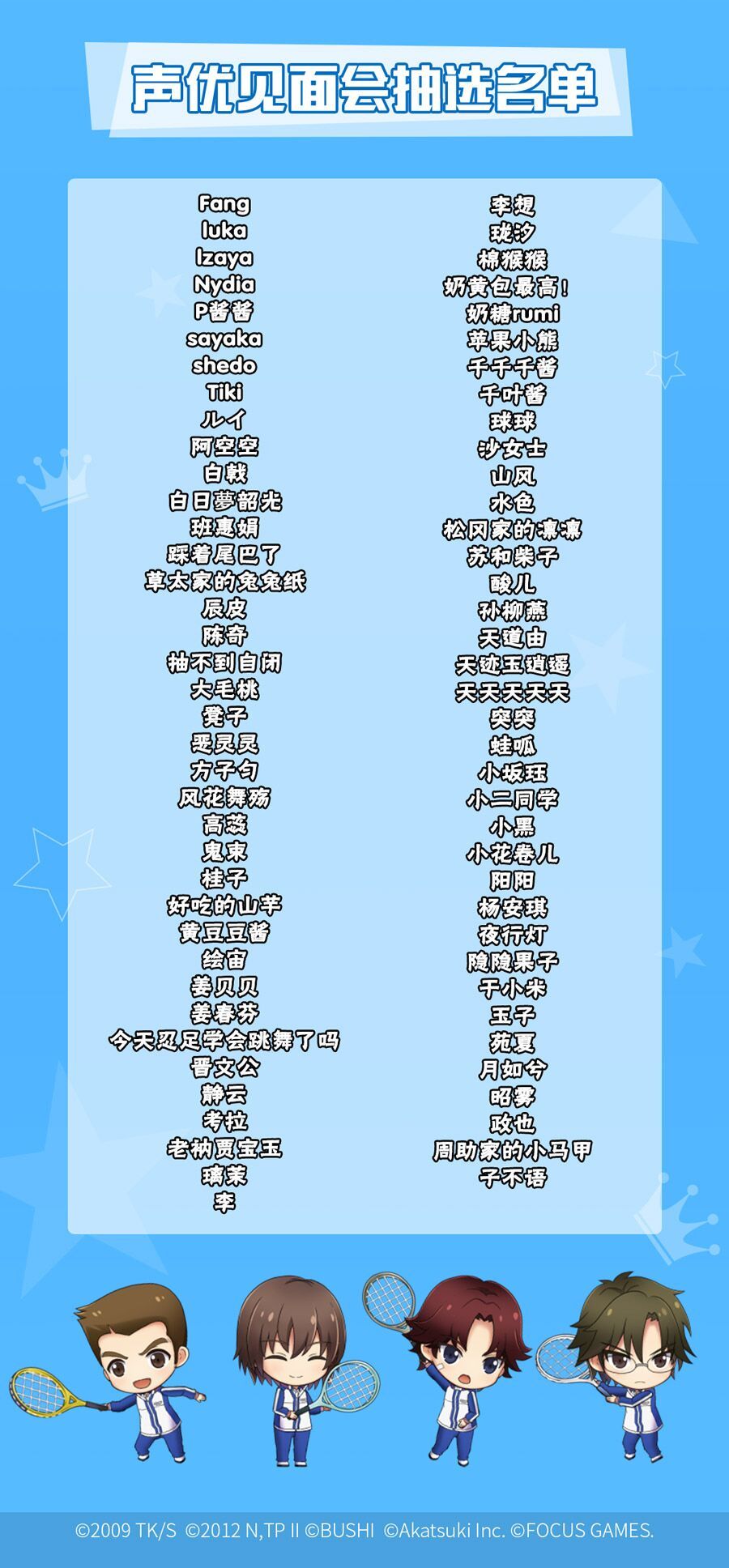 《新网球王子 RisingBeat》国服前奏——声优见面会第一批抽选名单公布