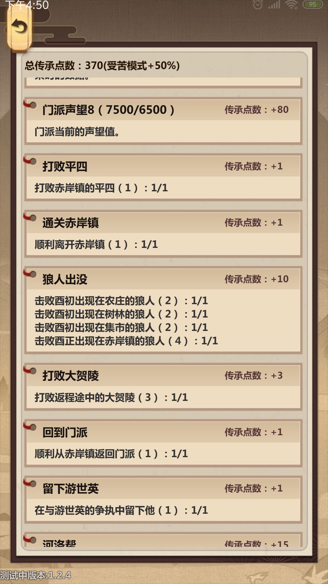 该档为1.21极限传承档,走了河洛沧州双线,385极限传承点,原始档已丢失,档1为1.24版本生档,385传承点可转生。(新更新412传承档,百万出门,百条神鱼,十本秘籍让你不必挂机习武)