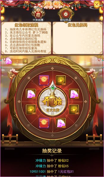 Ø粉钻奖励可在“粉钻转盘”处进行红包抽奖