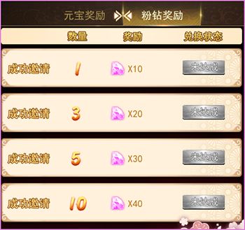 Ø招募到邀请好友达到30级可获得粉钻奖励。