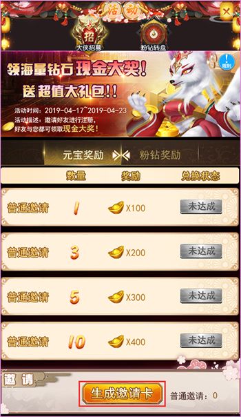 Ø活动界面点击“生成邀请卡”按钮,即可生成邀请码。