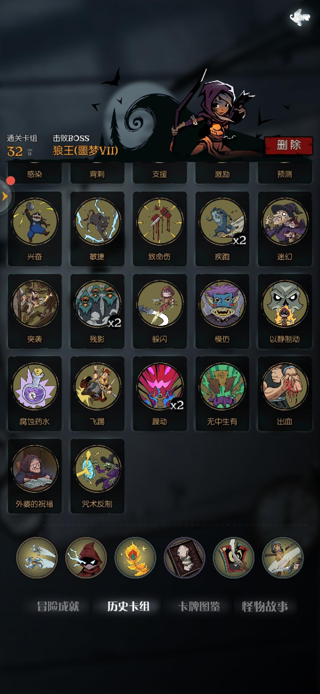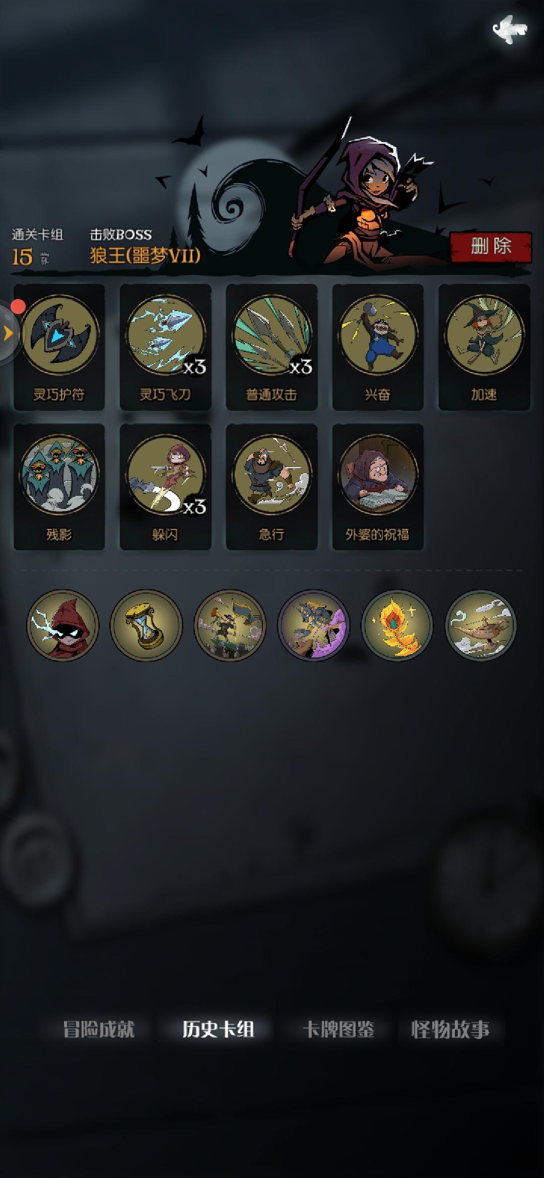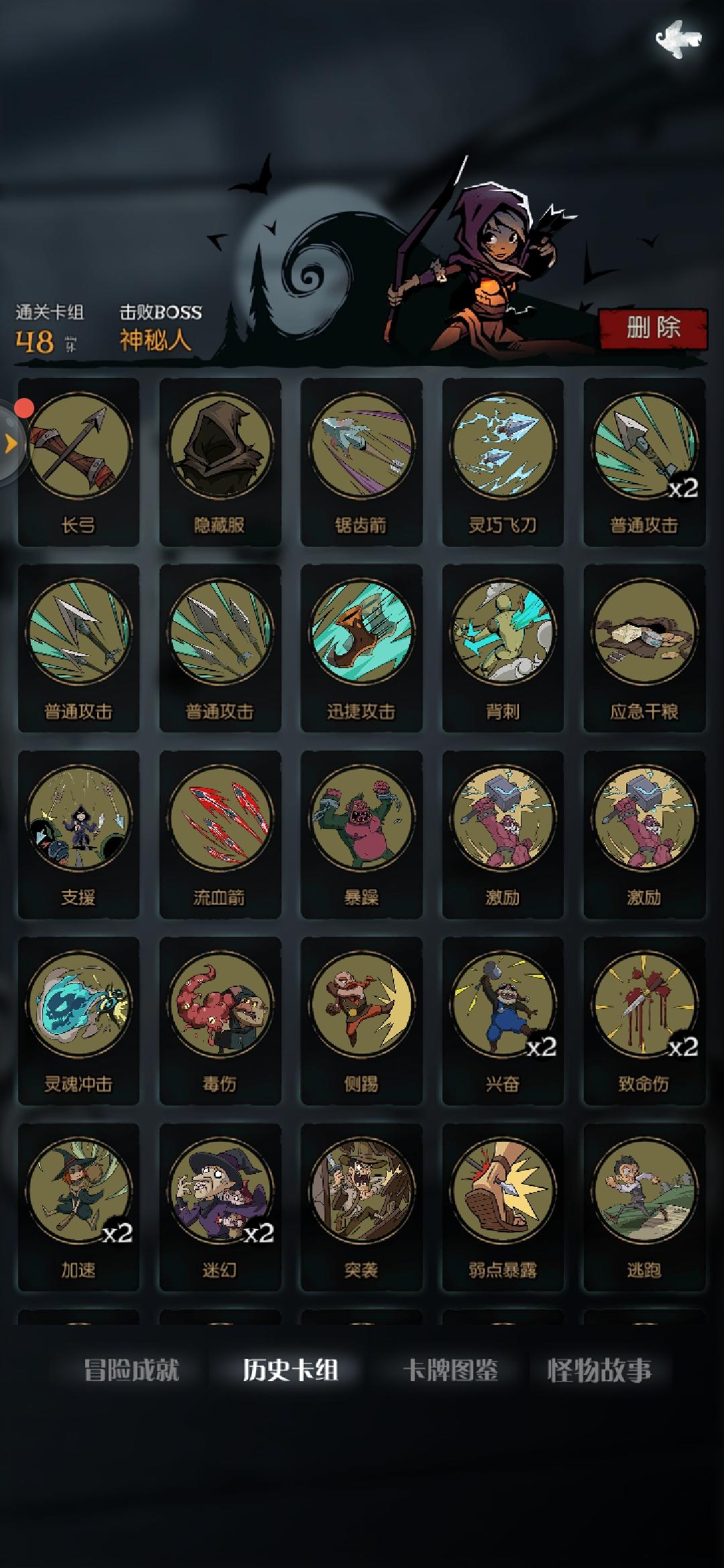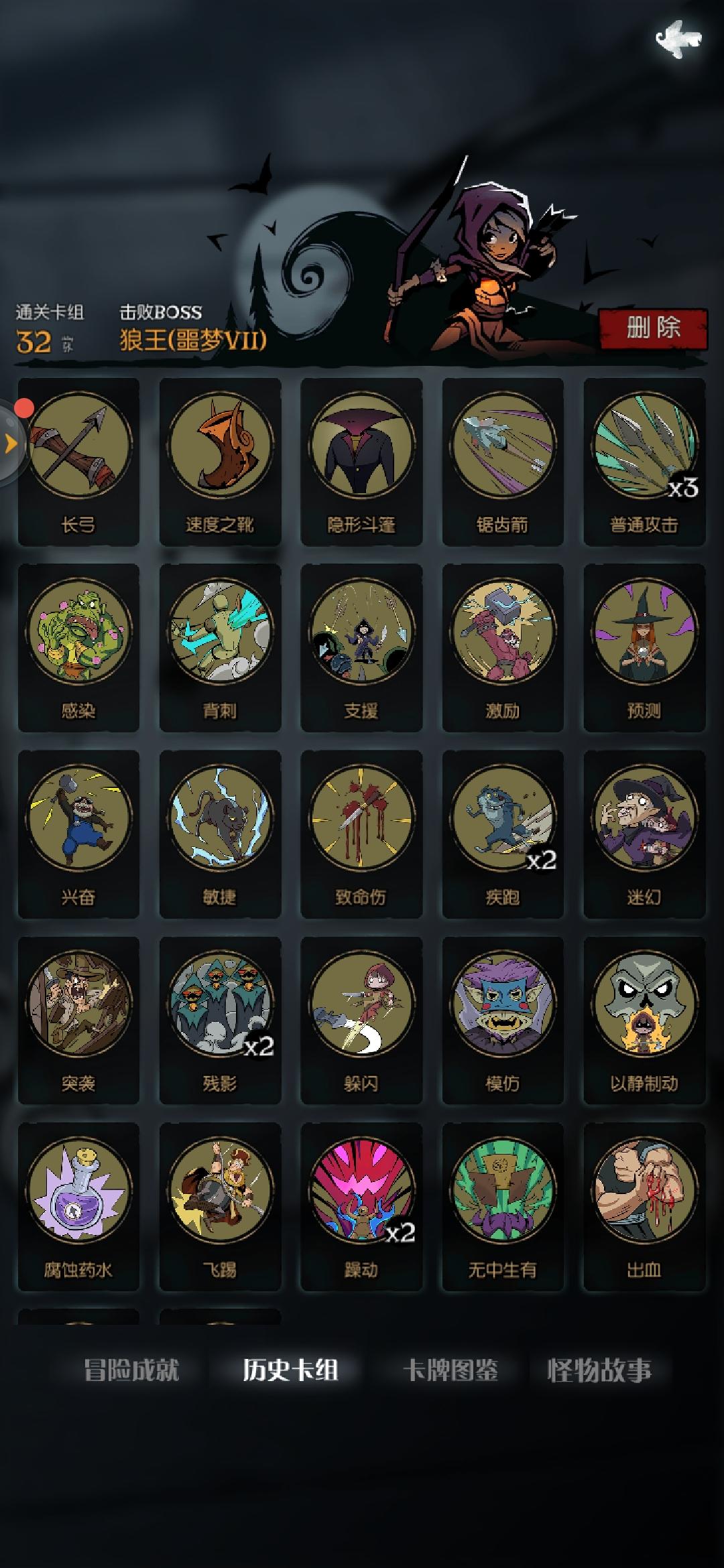 2.攻速+行动流(进阶)(自己研究出来的一种打法,已通过噩梦七):通过堆叠行动牌+长弓打出伤害,通常都是小额上次,克制幽灵船长,幽会女子以及其他有闪避的怪物,但是如果遇到有减伤的就比较麻烦
