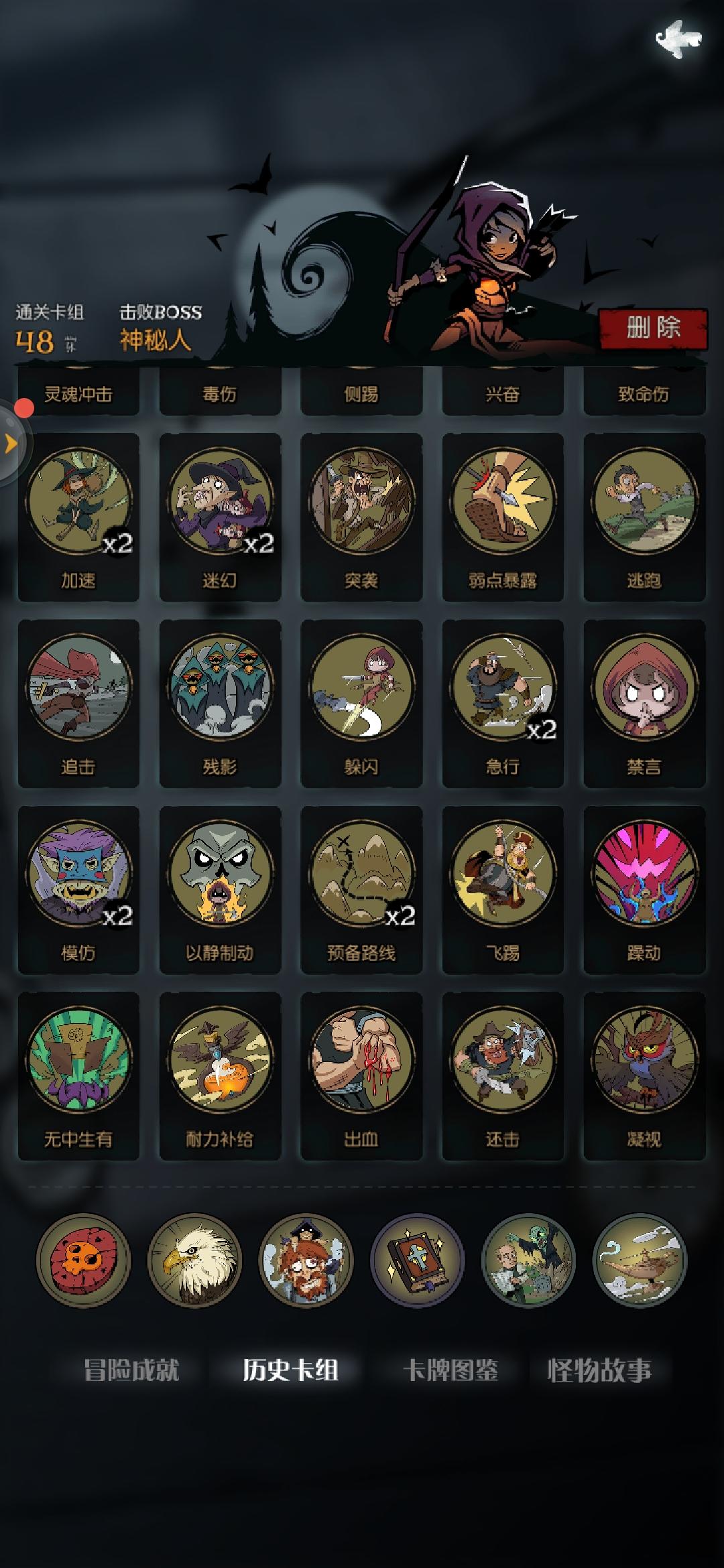 4.弃牌流(容易上手,但是防御弱,争取拿到吸血宝典):通过移除卡牌造成伤害常用卡牌:行动牌:疯狂(核心),取舍,预备攻击,预备治疗,灵魂羁绊(核心),预备路线 攻击牌:无 装备牌:无 祝福:早有准备(核心),暂避锋芒(核心)
