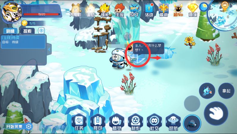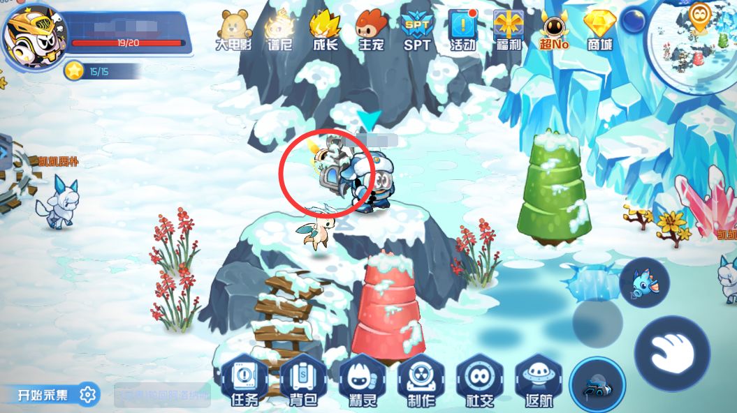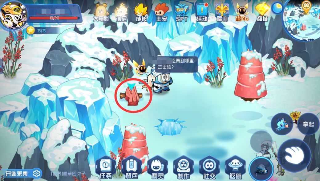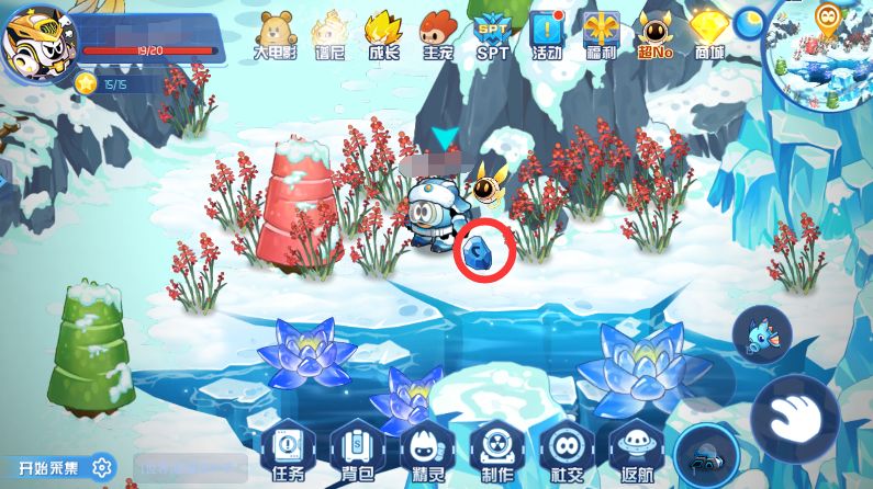 来到粉色石头位置,将冰柱放入圈中位置,藏有粉色石头的冰山就会融化(记得要白天有阳光才能反射光线融化冰山)