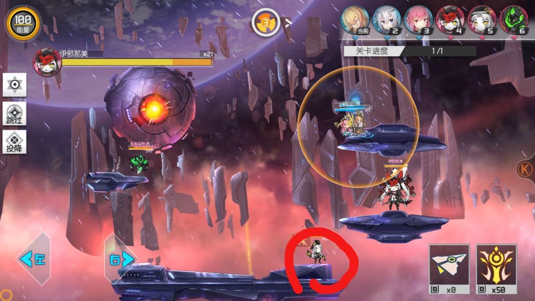 如图,一开始全用小飞机飞到这里,boss就打不到了,然后把两小怪搞死,再移动到红圈位置,boss还是打不到,把boss磨死,通关