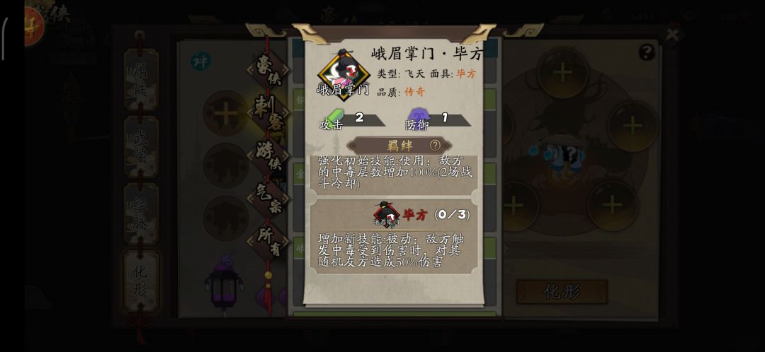 3.毒刺流:比较新的历练流派,最骚没有之一,但是存在机制问题不是很稳,标配铜尸阿紫余馆主,化形顶配