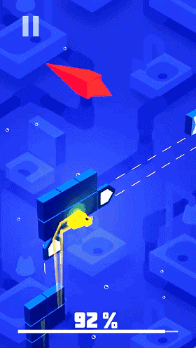 灵敏型游戏就是俗称的快速反应游戏,比如「永不言弃」、「滚动的天空」、「几何冲刺」等。也有比如「极速变色龙」和「跳舞的线」这种从视觉设计上干扰反应从而加大难度的作品,即便有舒缓好听的音乐和节奏辅助,同样无法改变被虐的实时,协调性就是这类游戏的天赋属性。