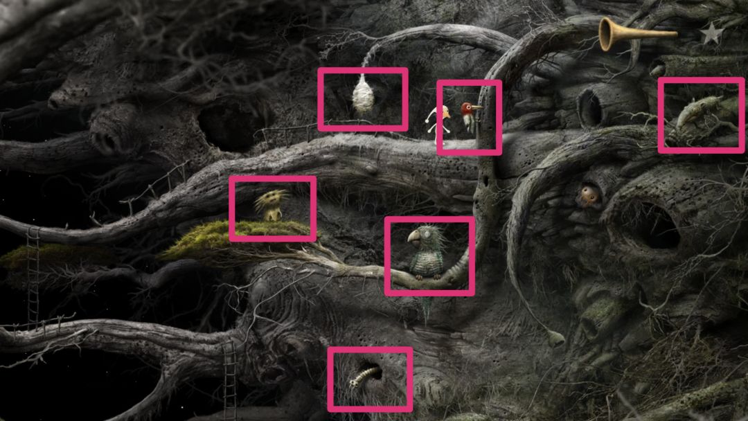 多次上拔树上的植株,引起树枝左右两侧的鸟争抢,掉落并得到类似于仙人球的东西。点最左边有三只虫子,然后用喇叭听一下,听完一 段较长的音乐后,获得成就。