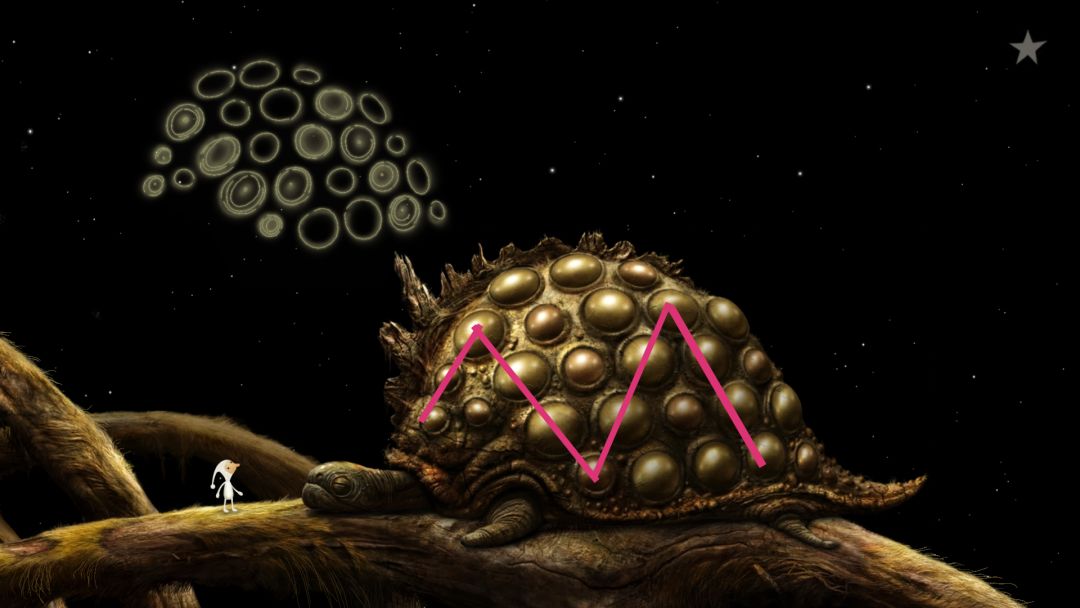 返回去刚到该星球的场景时,会经过有大乌龟的场景,按刚才的“M”形的顺序,点乌龟壳上的气泡,让乌龟重新堵住洞口,获得成就。