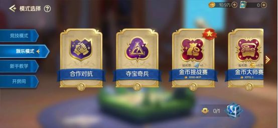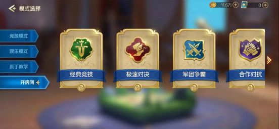 《战歌竞技场》手游共拥有竞技模式、娱乐模式、新手教学和开房间四类游戏模式,每种模式细分不同的游戏玩法。