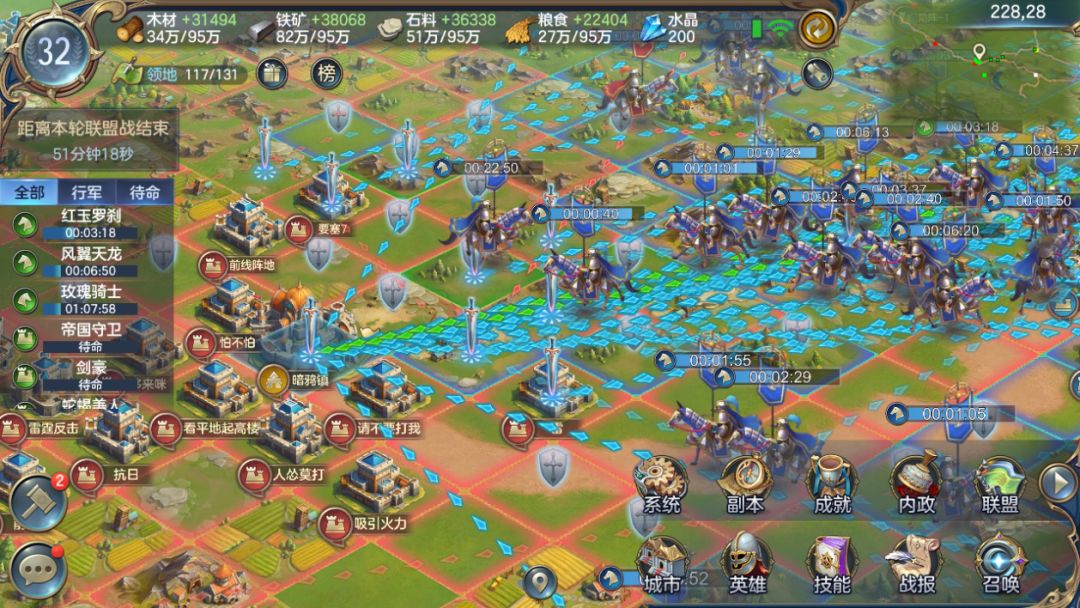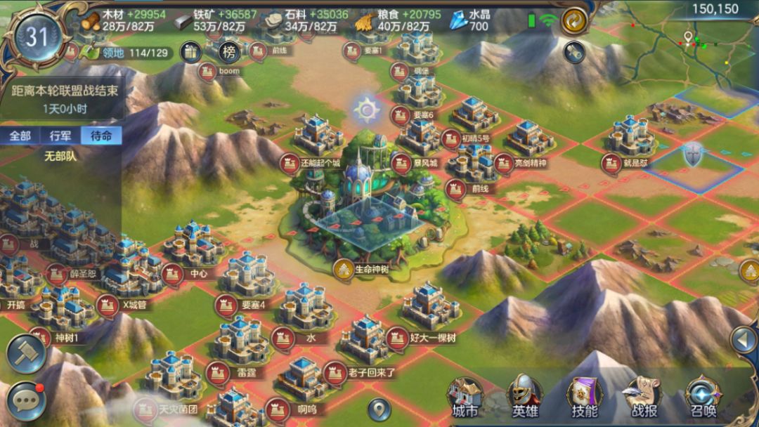 在各个玩家都完成建造或恢复分城,并且将己方城市全部占领后,双方联盟都已经调整为最佳状态,所有联盟成员都摩拳擦掌,准备打响两军对战的第一炮。