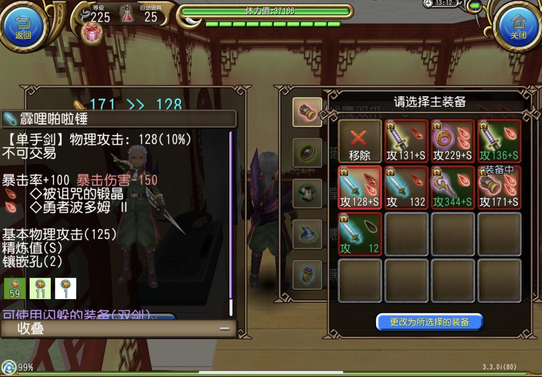 可以看到万速也是手到擒来了,另外武器想打死灵科隆也是可以的了,衣服扎非换成魔人就行