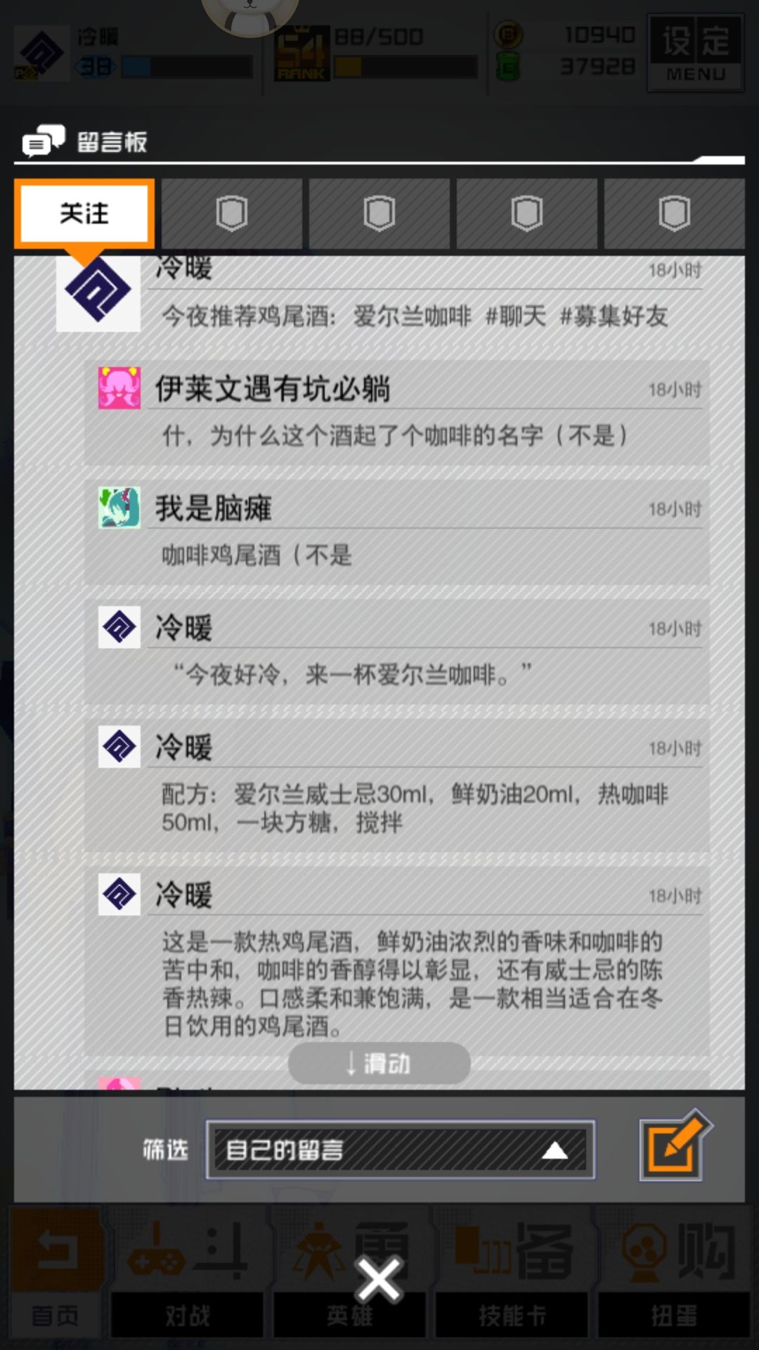 日常更新一款鸡尾酒(不 务 正 业)以及偶尔在留言板写攻略和开局思路(极 其 少 见)还有在留言板约车(看 见 就 上 欢 乐 打 康)