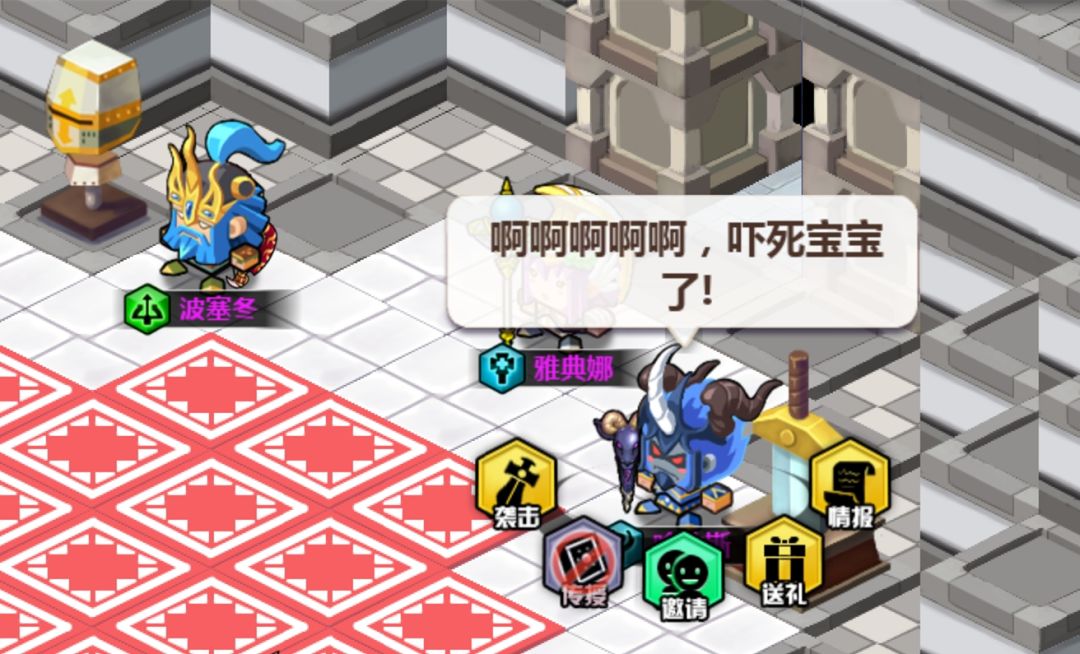 来到了光辉之都,我打听到了我未来的师父哈迪斯常常出没于竞技场,于是我混进了竞技场。一进去我就看到了一个英俊潇洒穿着蓝色盔甲、头上有一对犄角、手持羊首法杖的勇者,那一定是哈迪斯本人了,跟传说中描述得一模一样。于是我上演了史诗级碰瓷,滑倒在哈迪斯面前,颤抖着说:师父请受徒儿一拜。此刻,还没抬起头的我仿佛已经看到了其他人一脸懵逼的表情。过了一会,面前传来一句话:啊啊啊啊啊,吓死宝宝了!