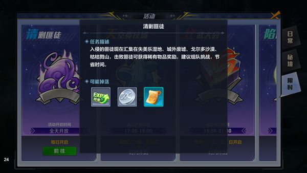 以上就是关于活动清剿劫匪的全部内容了,这个活动没有时间限制,而且每天都可以做,可以说是非常不错的每日福利。
