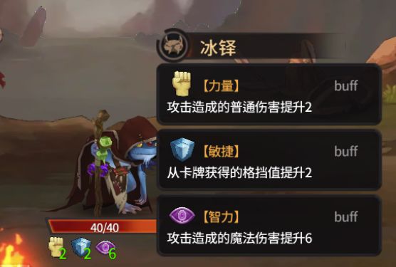 那么,我们就需要关注【智力】啦。魔法伤害=智力值+魔法伤害牌面数值;普通的攻击牌除了攻击外,还可以给冰铎加上2点智力,所以我们可以先将智力堆高,再使用魔法攻击牌。