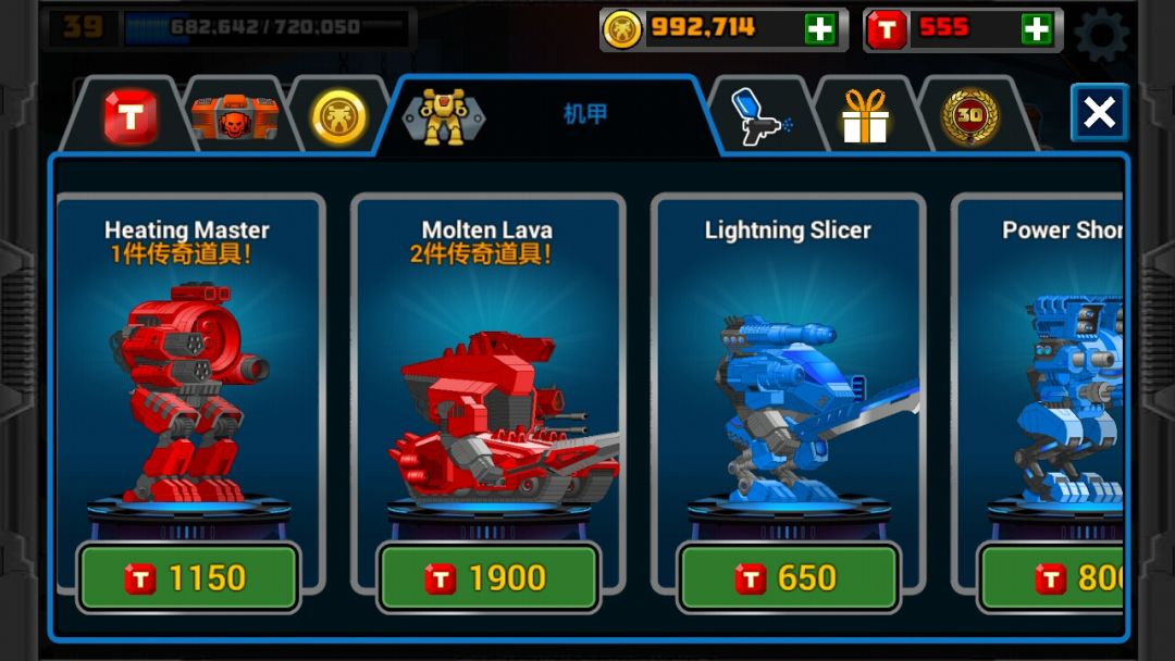 目前機甲進度是這樣,只有升級金色的裝備。