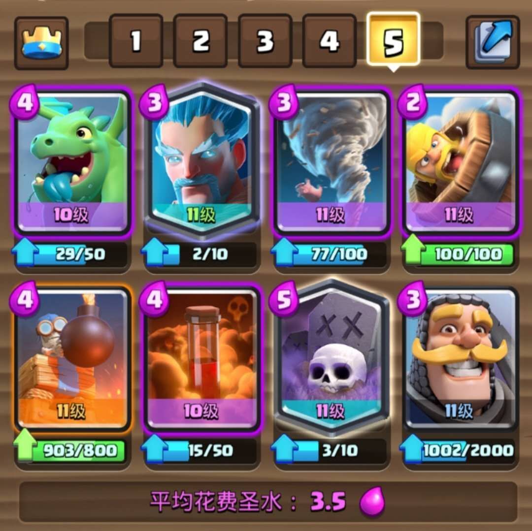 时间来到了2019和2020的交汇处。2019年12月,骑士的生命值又提升了5%,攀上了1400!而又由于那时刚出的圣水戈仑和增强后的暗夜女巫间接地带火了原本的废卡炸弹塔和不温不火的飞龙宝宝,炸弹塔龙骑墓卡组于第八主题季横空出世!!这套卡组在第八主题季迅速发展,在第九主题季到达全盛!使用率和胜率变得颇高,也克制了不少卡组!