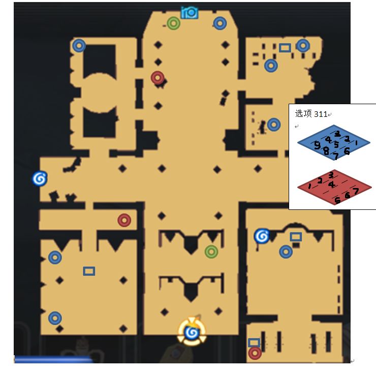 4、最后解释一下位置颜色。蓝色表示第一轮可以发现的。红色的表示完全结束蓝色后可以再次发现的。绿色的表示在完全完成红色的后可以发现的。