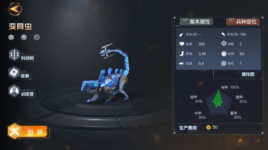 变异虫便宜的造价再加上极其出色的输出能力和前期最快的移动速度,当仁不让的成为了最火热的快攻兵种。可以在开局速兵营的情况下先生产出两只变异虫,快攻敌方打对方一个措手不及。