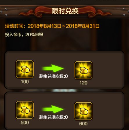 属于限时活动,在规定时间内投入一定的金币,可获得20%的回报