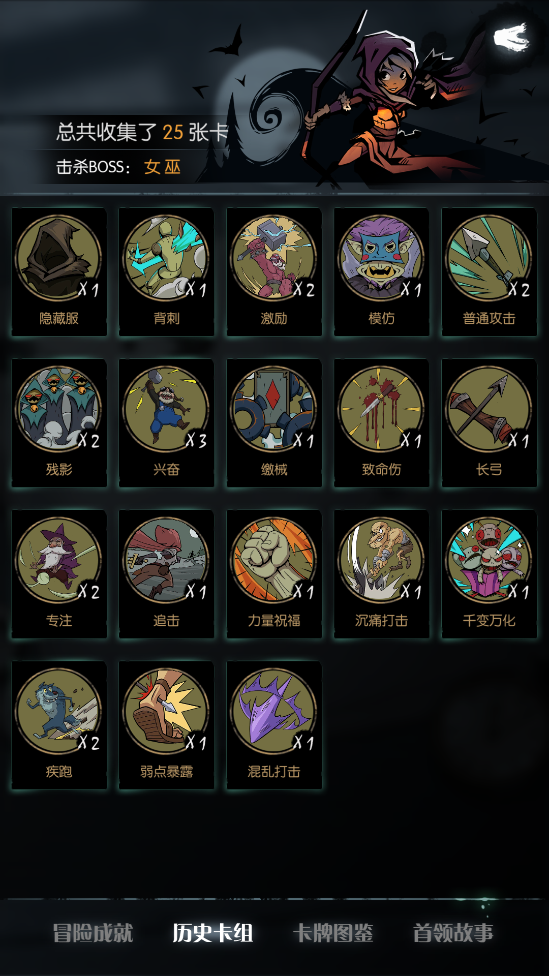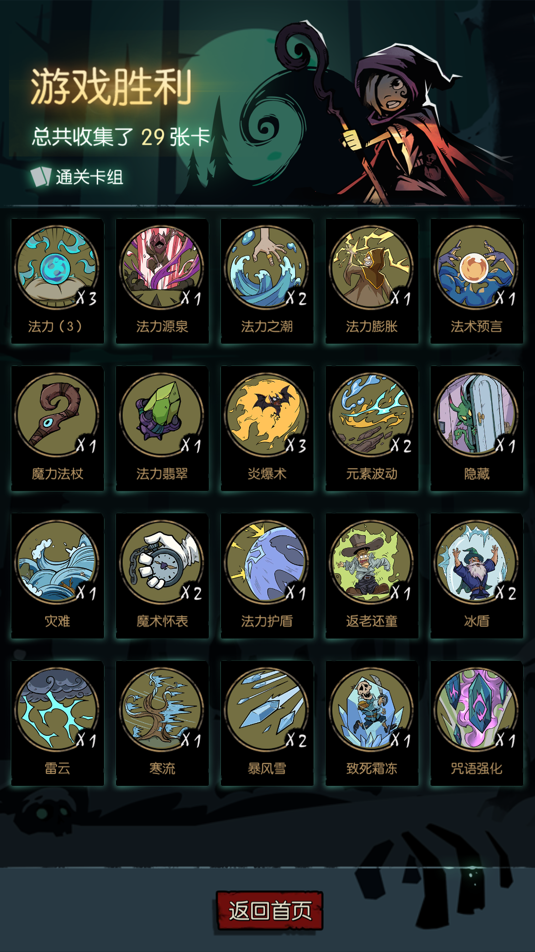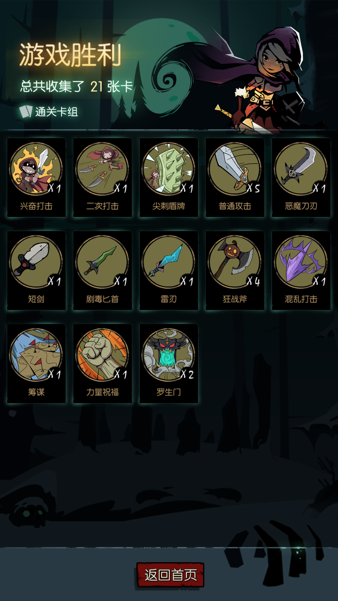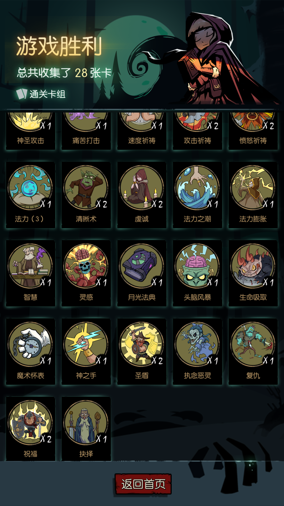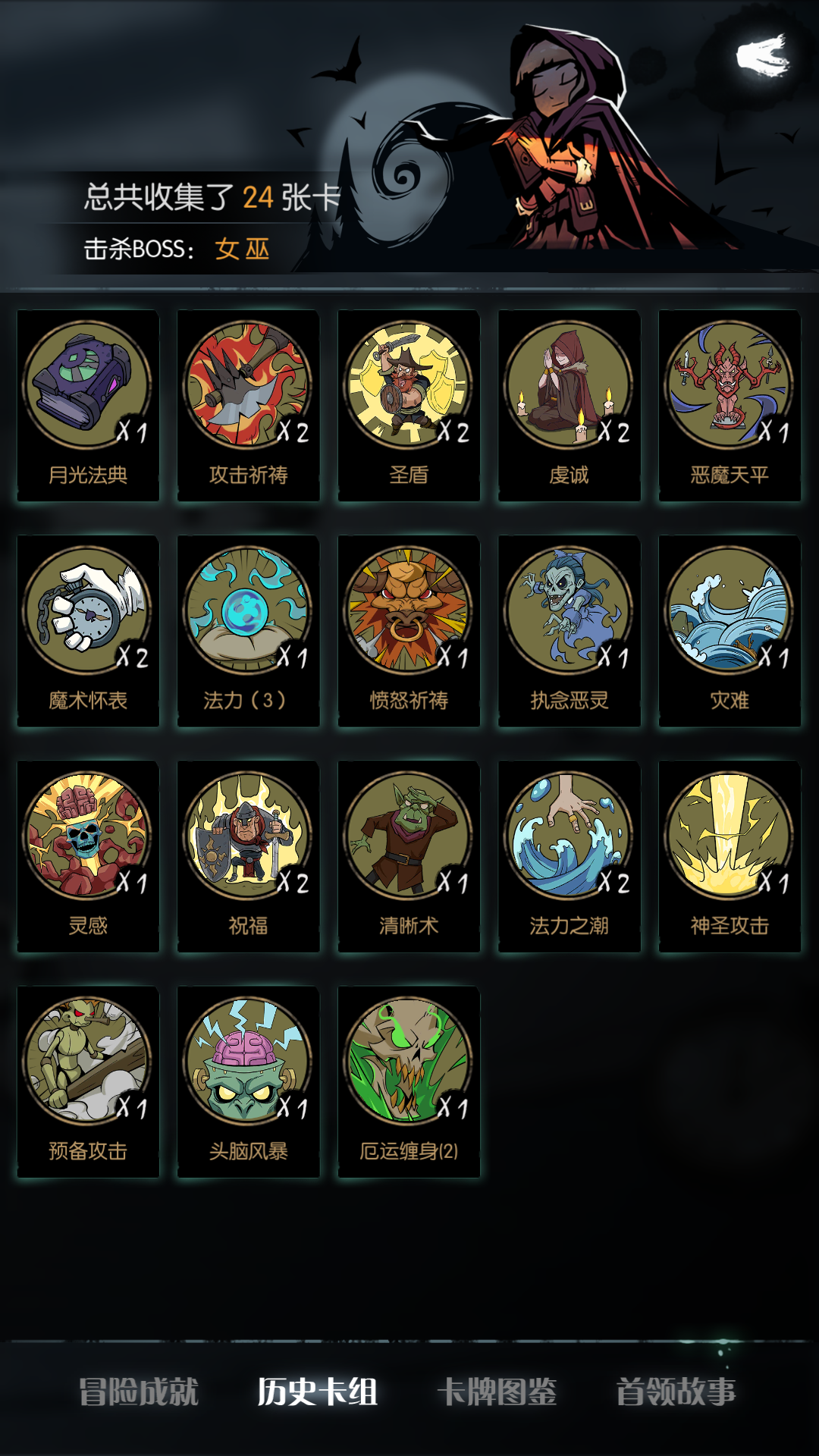 第二回合我把牌都抽空了,叠了2次力量祝福,还加了两层虚弱,把女巫缴械后硬生生地给磨死