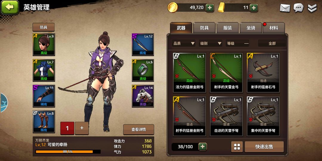 这是我十二级的截图,很多人觉得很变态,十二级的对手连我甲都打不烂。我的秘密是二阶竞技场前留着所有的金块去买二阶竞技场进阶宝箱(300金坷垃)留着所有的升级材料去升开出来的低级装备,我开的是暗影套。到十二级你也能和我一样变态。