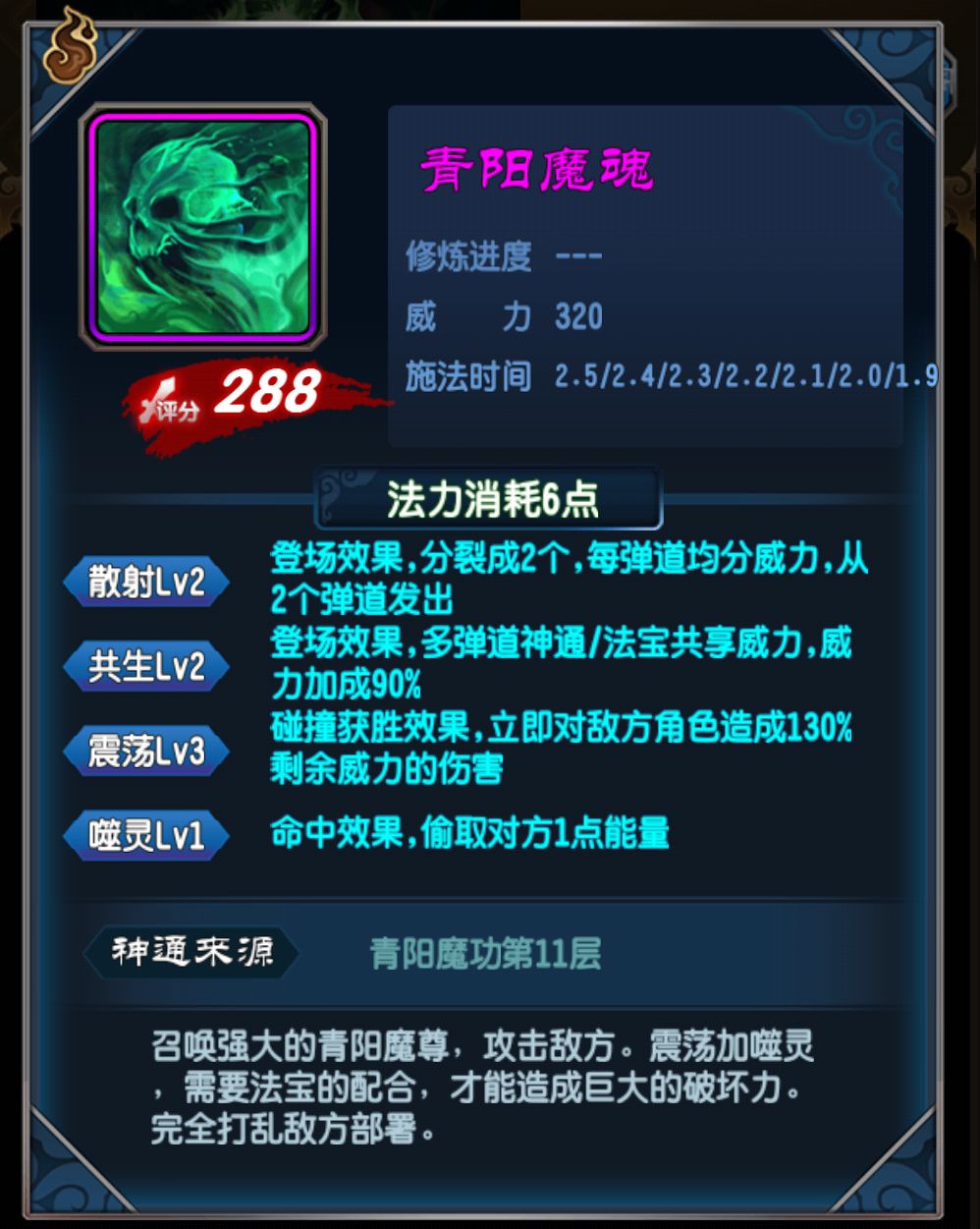功法的选择在游戏中非常重要因为你一场对战使用最多的肯定是功法携带的神通了,而且强力功法加成也是非常可观的,微氪玩家的功法差不多是在真丹开始最好,这里推荐就是真丹使用青阳魔功,青阳魔功里青阳魔魂的属性在真丹境界非常好用如果氪金算是必备的功法。很多零氪玩家会在真丹挺住不再进阶,时间长了也能攒出来一本。