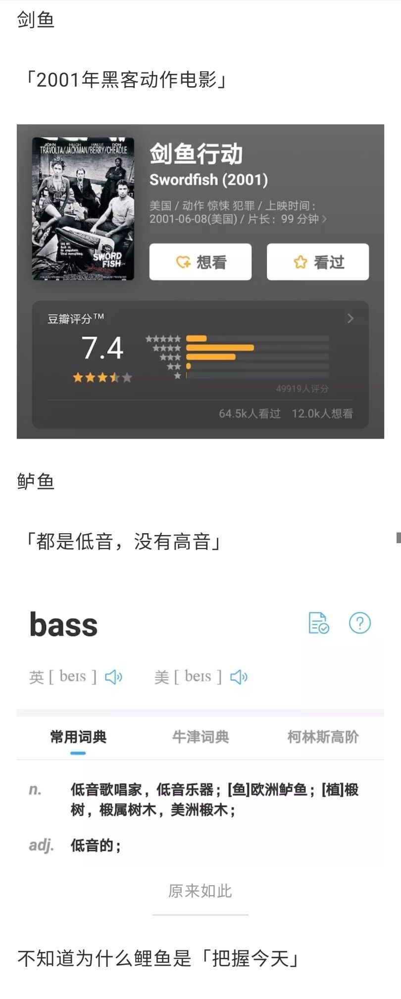 感觉有些鱼的介绍词很有意思,之前查了查几个介绍词的意思,搬到这里来~