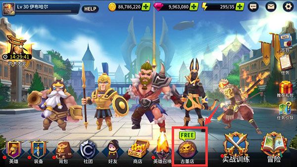 古董店其实就是一个商店,每天出售各种材料、装备和英雄。当你缺少材料的时候,就可以来这里碰碰运气!运气好的话,说不定还能刷到R级神装,甚至是传说英雄!