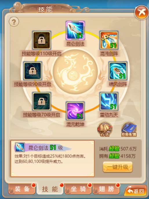 游戏为更好的表现三生三世的古风世界,选用了经典的回合制玩法,通过仙剑、梦幻式的游戏体验,达到了古风与游戏两者的良好结合。同时,游戏不断打磨玩家体验,为了消除回合制战斗的操作量和节奏给玩家带来的负担,游戏引入了挂机类设计,通过预设技能释放顺序和战前布阵,就可以按照设定好的思路自动战度,省去了原本必要的频繁点击。