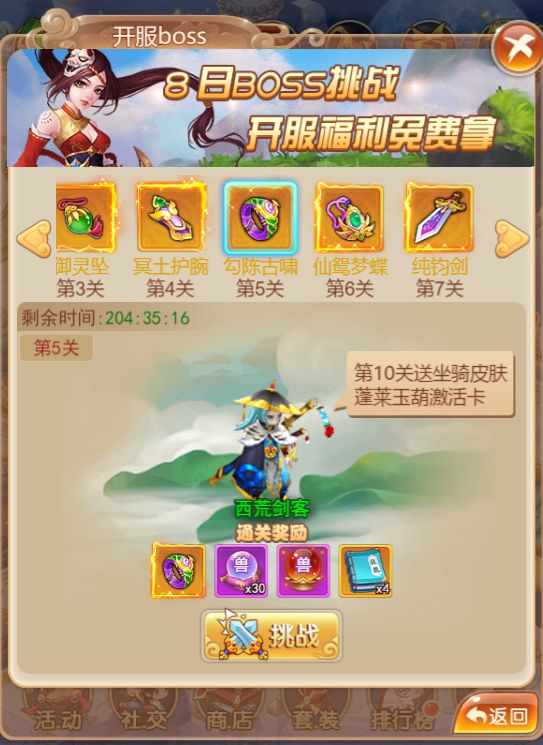独创开服boss活动,8日内限时闯关挑战,全民打boss,免费拿金色装备及极品皮肤。