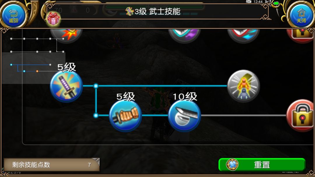 武士技能:明镜是二阶技能,优先点满,150后点满怪力(四阶技能)