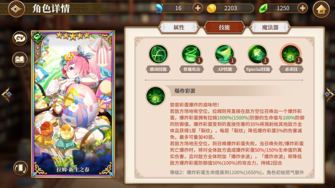 满buff大招高达:250*2+250*1.5=875配合sp溅射250*1.5*1.25=468.75+500=968.75这里在没有考虑sp连击加伤的情况下自己大招面板增幅就接近1000,对单更加是高达375就是因为这个离谱的大招倍率,所以这个人物可以玩输出。