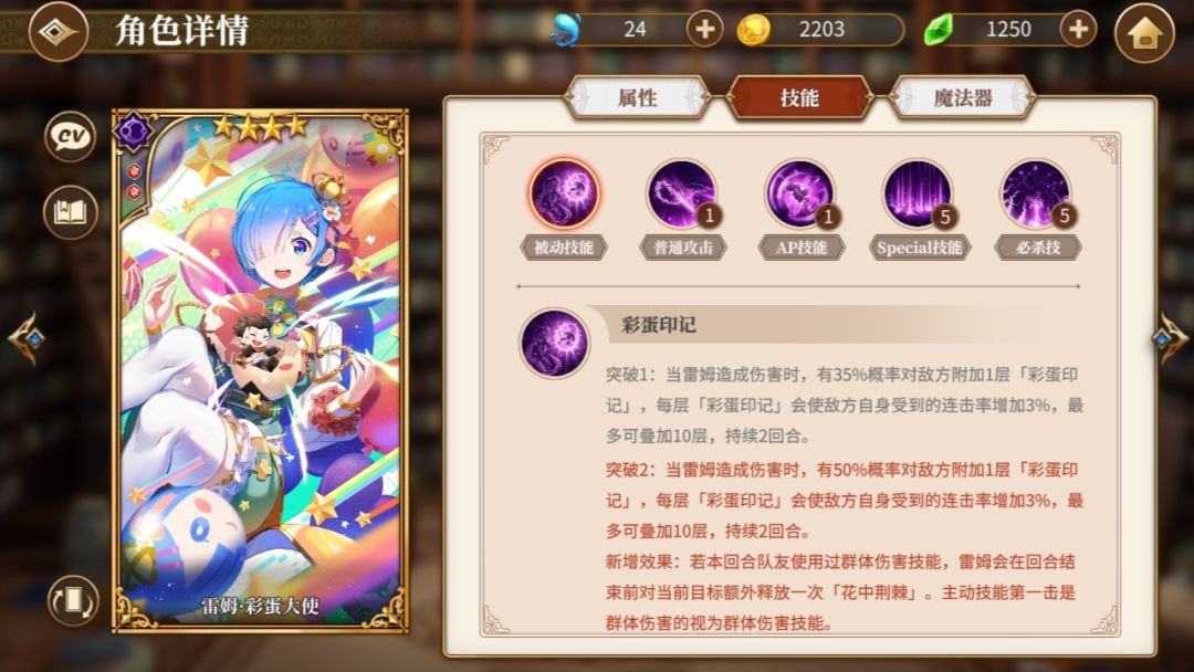 被动:额外的一次ap技能,高连击率普a:忽略ap:多段叠被动buff,小额伤害sp:连击伤害增加,溅射。(以上技能都是多段。)从技能搭配上来看属于辅助,挺优秀的辅助技能组但是和彩拉有点像,大招导致人物截然不同(只不过彩拉是负增长)