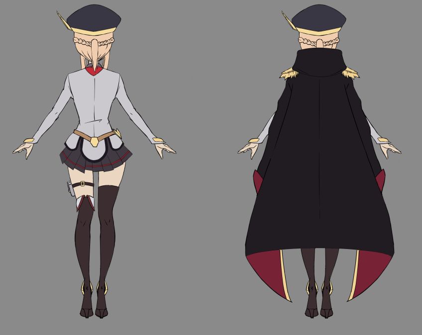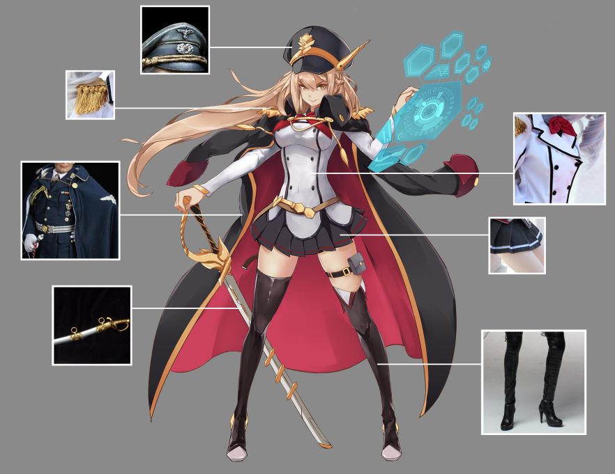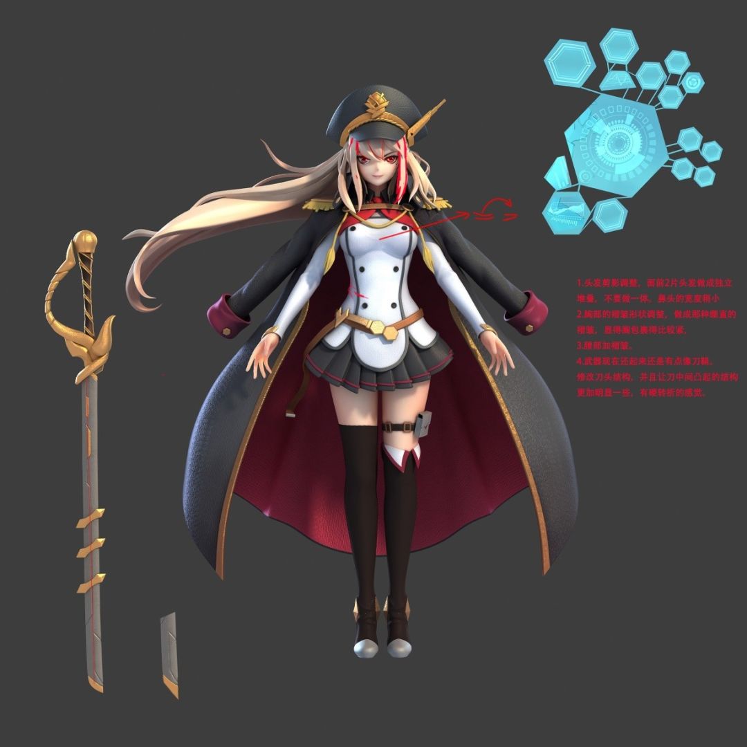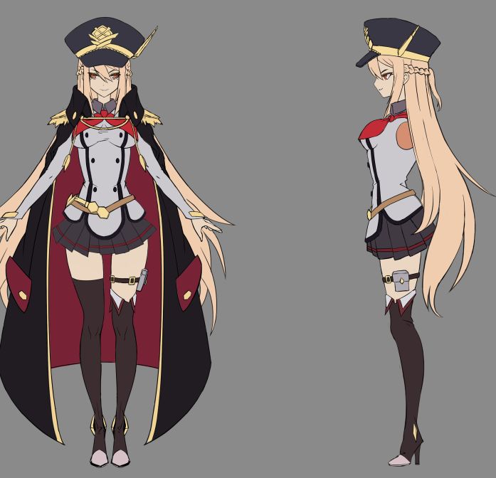 首先是一个特瓦根的原画设定三视图,不知道大家有没有注意到军袍下的学生制服呢~