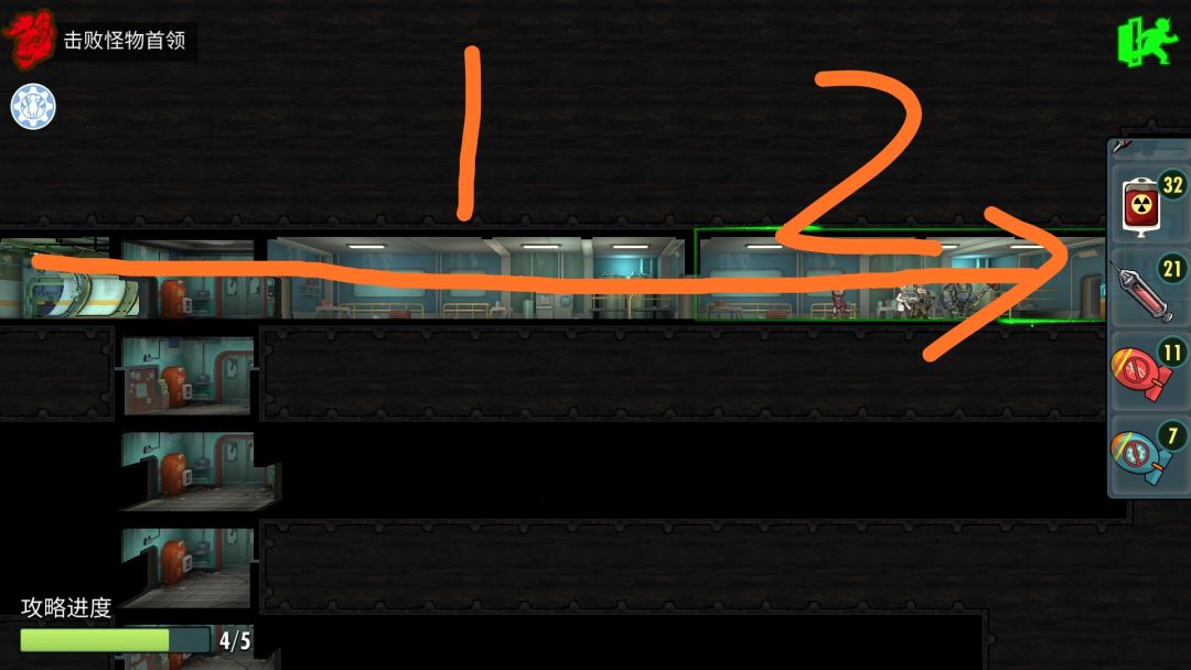 第五关往右直走就可以了,1、2处有条免控狗和一个自爆机器人。boss的话开自动就行了。