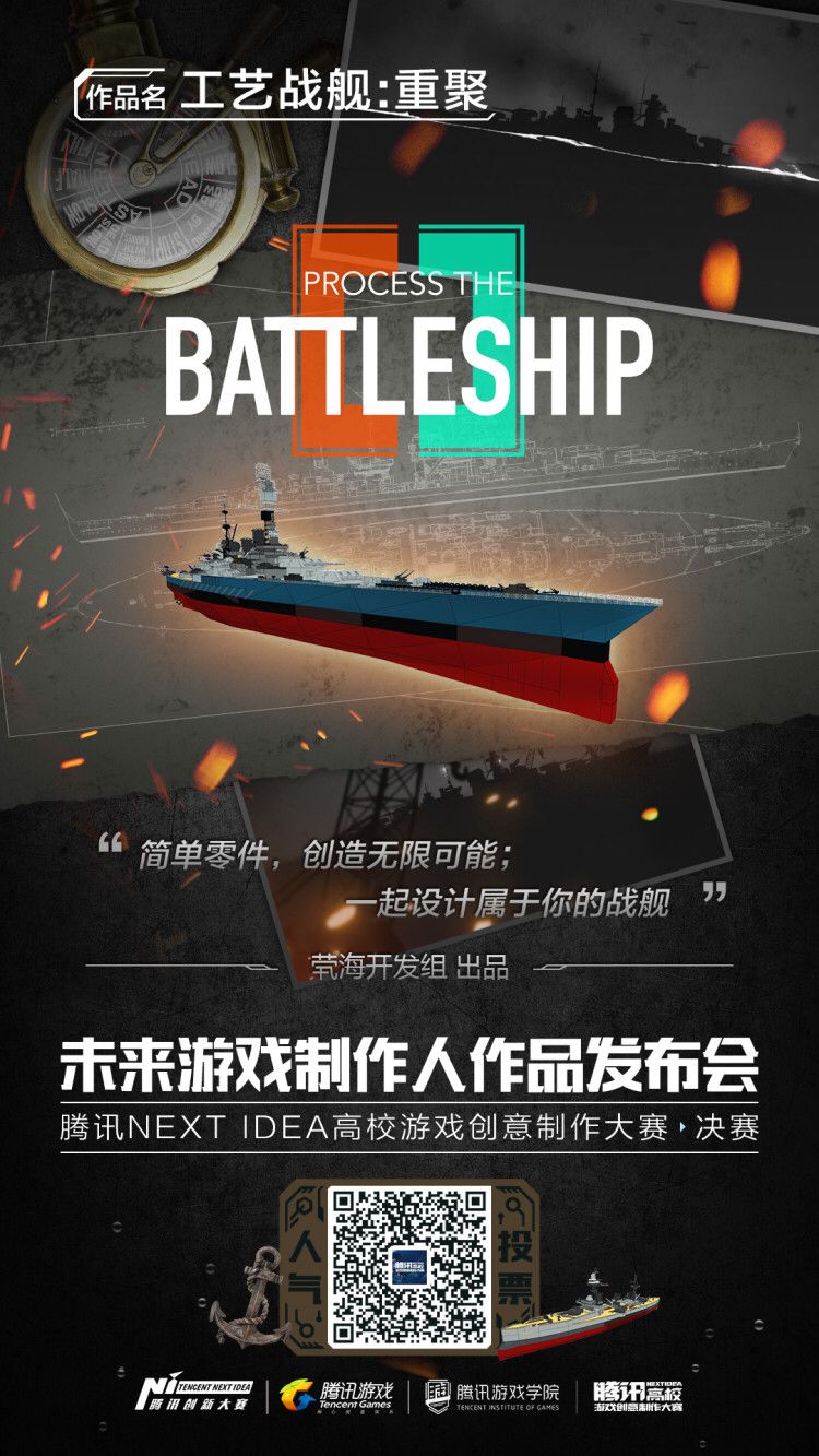 《工艺战舰:重聚》成功入围2017腾讯NEXTIDEA高校游戏创意制作大赛决赛,欢迎来大赛活动页面为我们投上宝贵的一票哦~(每天都能投票呢,有了大赛奖金说不定开发进度就能快一些啦)