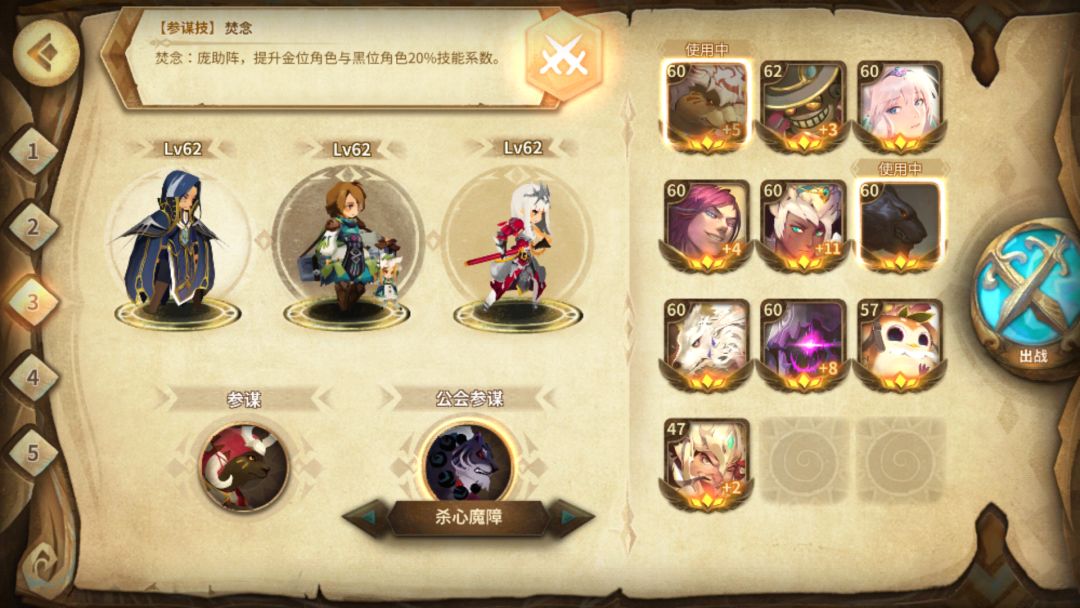 通关阵容:金位co+黑位诺瓦+白位奥斯塔,参谋刃+黑虎。金白位随意搭配,金位选有嘲讽的肉比较舒服,白位都差不多习惯用奥斯塔了。无强制换人