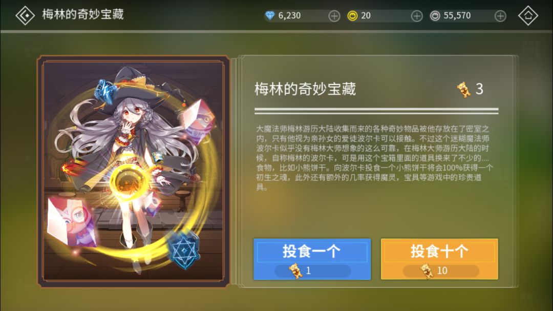 当角色等级达到10级时,会开启「梅林的奇妙宝藏」,点击魔灵界面的“幻象棱晶-获取更多”就可直接进入。幻象棱晶可以通过在那里投食“小熊饼干” 获得~