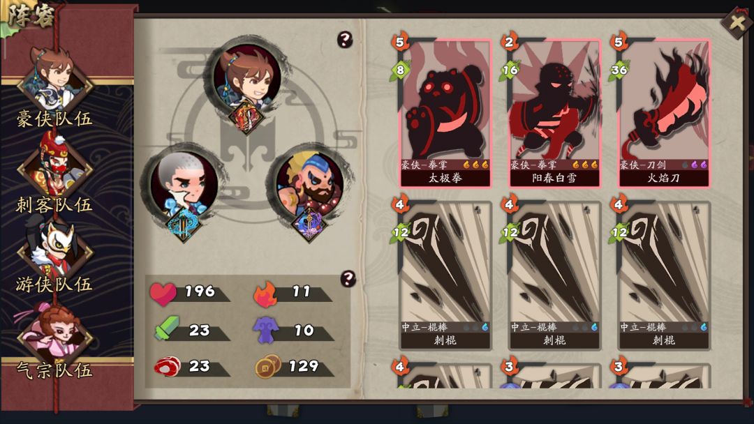 武侠选择:太极传人,宫主,这两个极为重要,输出担当,另外宫主技能超厉害。明王是我自己喜欢用,技能有伤害还有免费牌,适合补刀