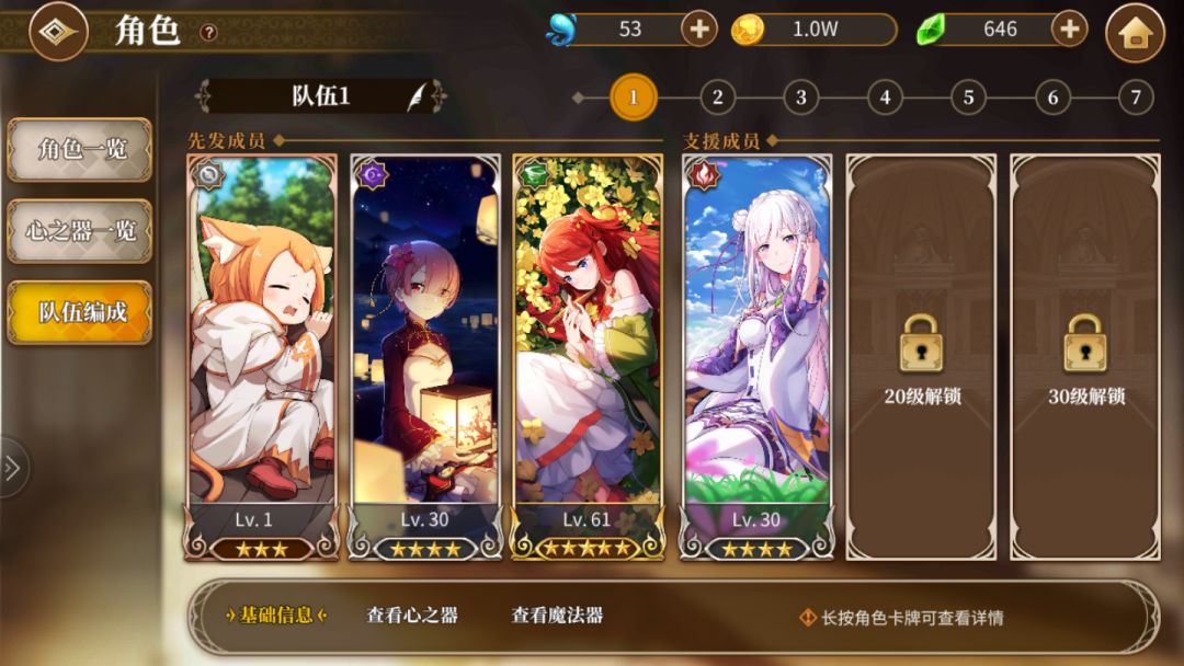 拉姆是我随便弄进来凑数的,爱蜜莉雅对风属性有克制我给她装备了了协助出场怒气1000的魔法器,进场就能放必杀,其他也就是前剑圣ap群攻自带一次无敌。可能是这里比较强?虽然不是很懂那么多,我觉得应该是没什么难度……的。