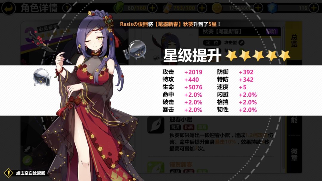 本期新春活动限定角色,果然也没让我失望。五星数据奉上!