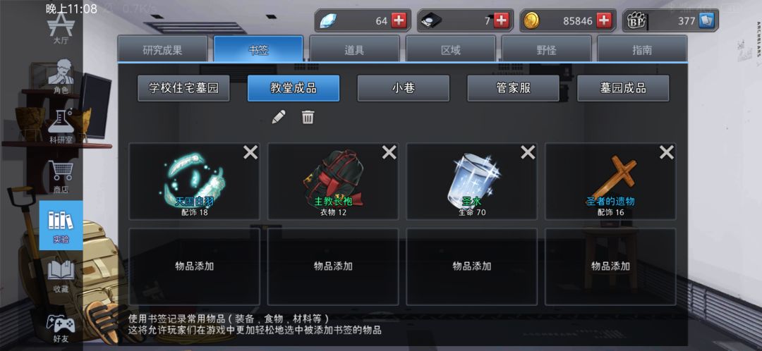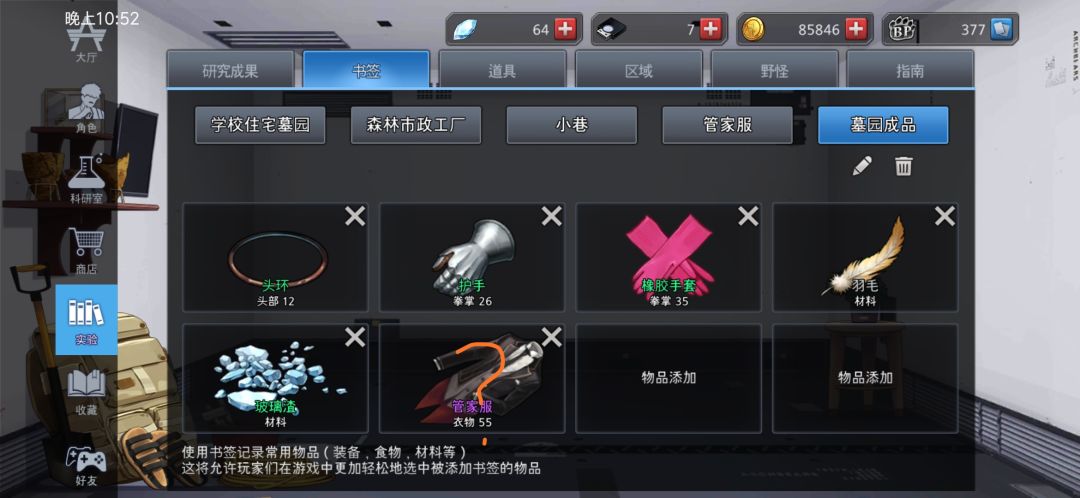 推荐:舍利,遗物,猫箱,望远镜,命运色子,团扇,稀有材料和合成物。