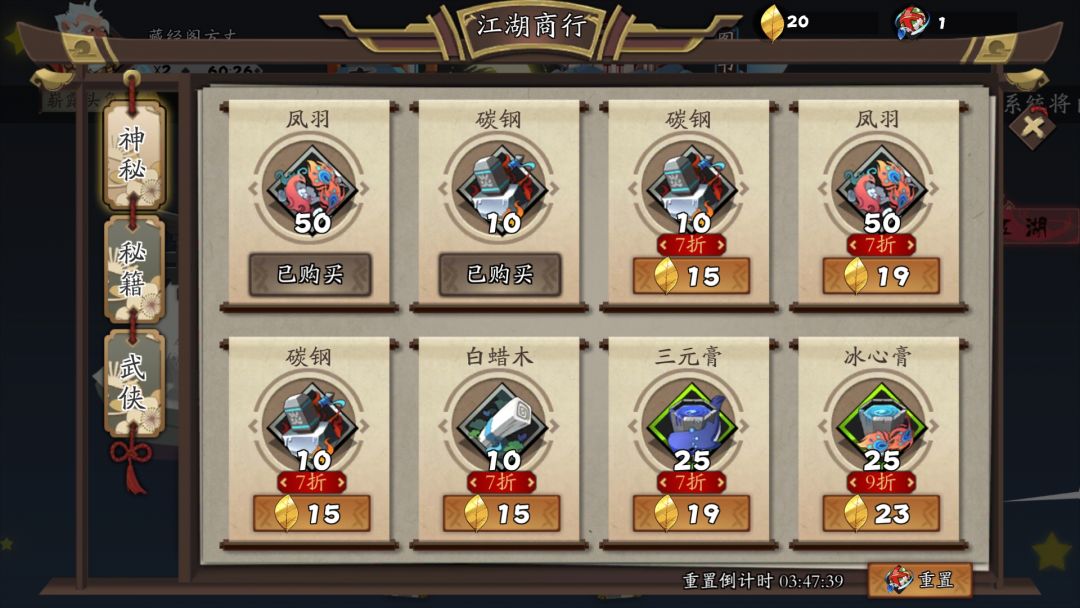 商行每天会刷新新的材料,人物碎片和秘籍碎片。商行开启所需要的入场券是在副本中存够300金币在商店处可以购买到的。所以萌新们打副本不要急着通关或者是构建卡组,先存钱把三个入场券买了就可以开启商行功能了