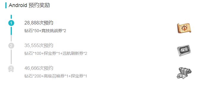③46666次预约:钻石*200+高级召唤券*1+探宝券*1