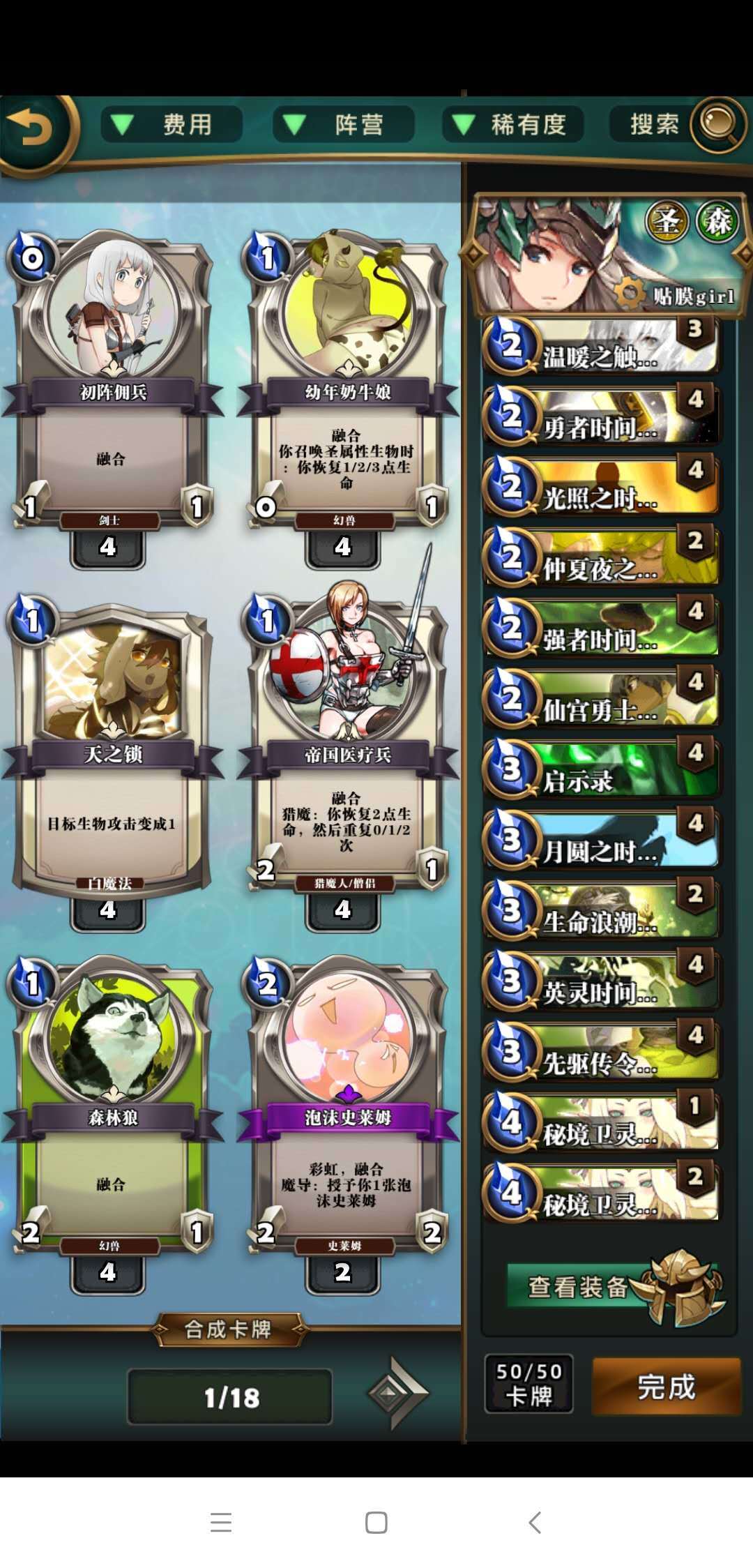 卡组如下图所示,相当直接了当的卡组,组成也没有红卡,主要的橙卡应该大家也有七七八八了,本卡组主旨就是贴膜强化,赢得快,输的也快