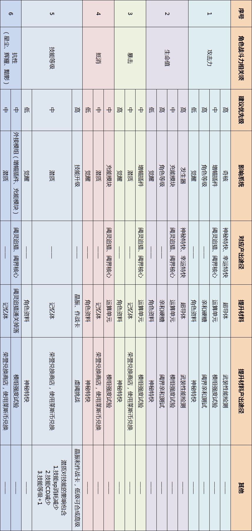 4.后期(40级以后)优先提升外接模组(增幅插件、充能模块),对攻击力、生命值、暴击、抵消等属性提升较为重要