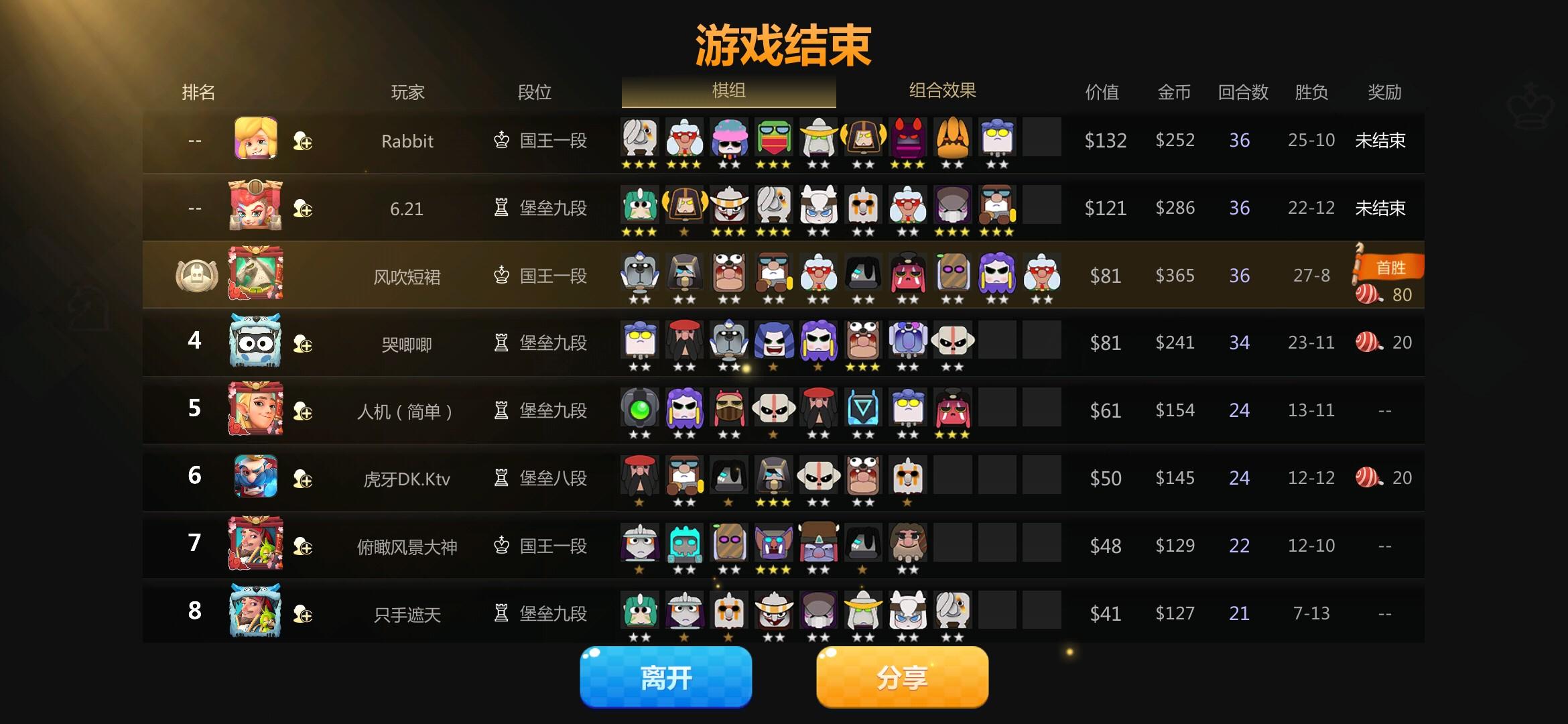 第32回合吃鸡后迟迟不结算,退出重新登陆显示游戏进行到34回合并且我快出局了,根本来不及调整阵容直接被连续血入后直接出局,出局后才正常结算。多多你服务器越优化越垃圾了吗?还打什么阵容打什么运营?直接等别人出BUG后坐等吃鸡就行了呗!麻烦给个解释好吗!