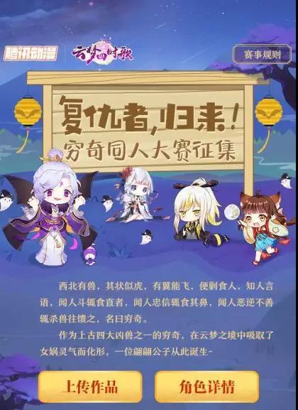 灵主大人们将自己基于《云梦四时歌》手游中,穷奇为主题所创作的同人插画/故事/趣味表情,上传至腾讯动漫“穷奇同人征集大赛”活动页面;